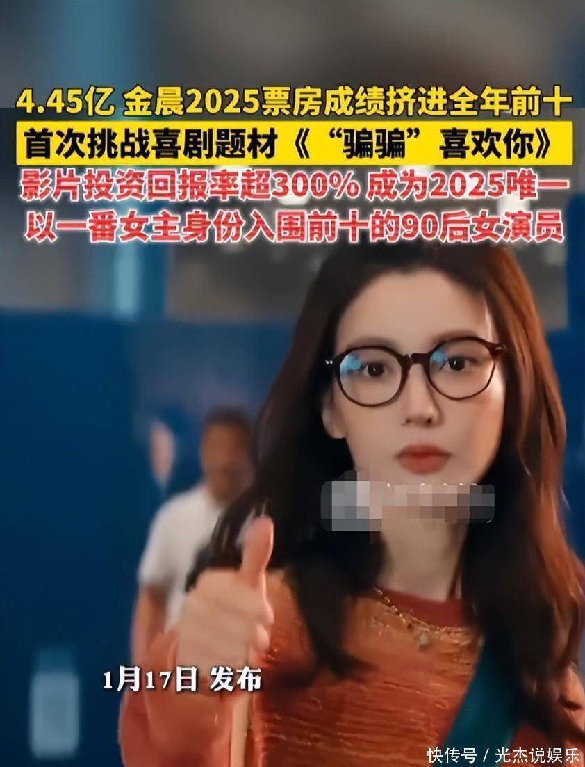 金晨最近火了,不是因为综艺也不是八卦,而是她主演的电影《骗骗喜欢你》票房.45亿。这数字听起来不算炸裂,但对于一部小成本爱情喜剧来说,已经是奇迹。关键是,她是唯一一个靠一番女主身份杀年度票房前十后女演员。